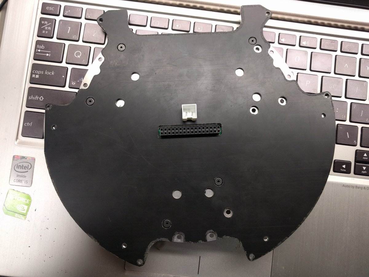 こんな風に天板の裏面はコネクタが生えています.真ん中から生えてるコネクタはバッテリ保護回路からControlUnitやモータードライバに供給される電源の+側の接続/切断をするためのマスタースイッチに伸びる部分です.マスタースイッチはControlUnitCoverの天板に付きます.